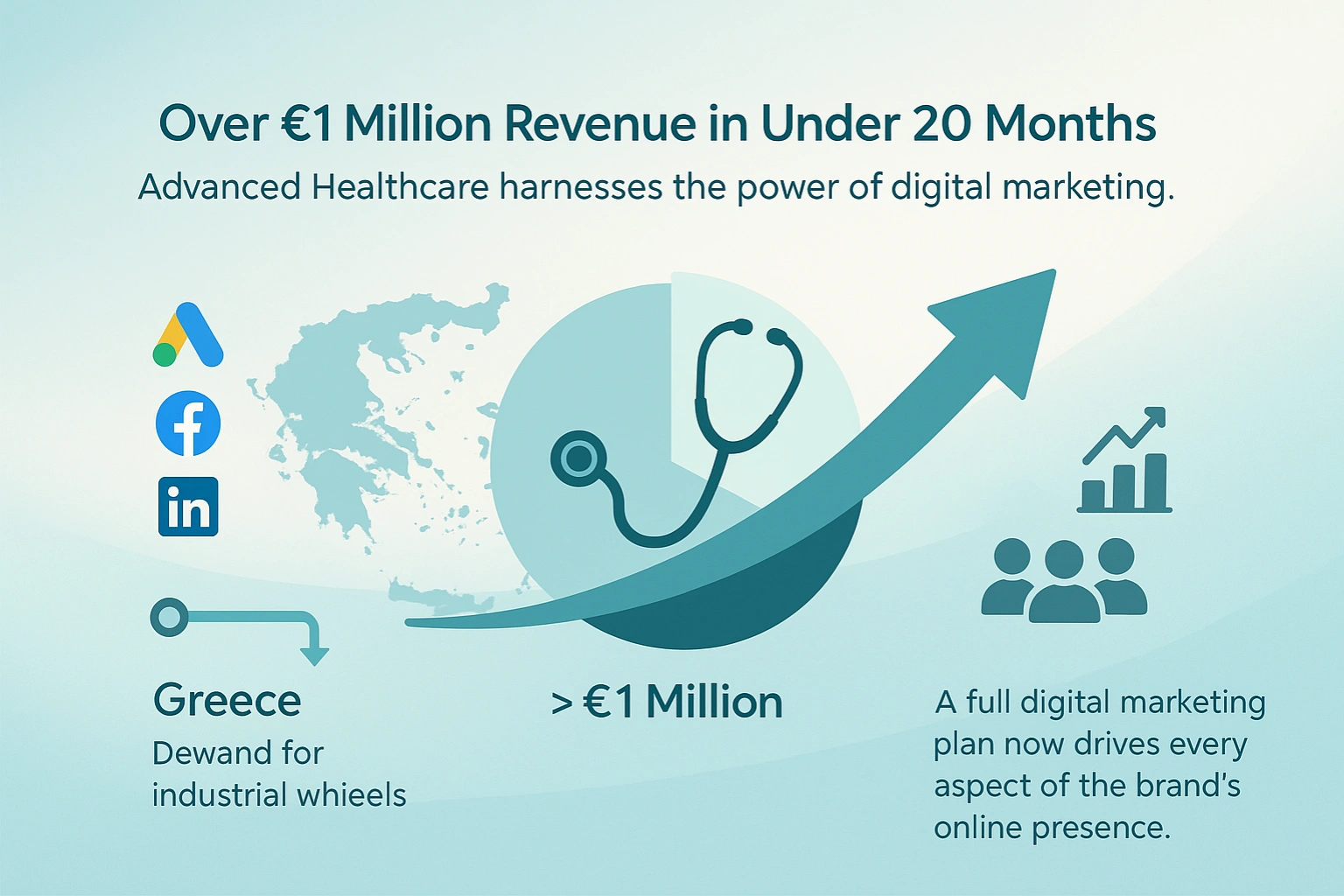 Τα αποτελέσματα της στρατηγικής μας ήταν εξαιρετικά. Το νέο προϊόν που λανσαρίστηκε, το στηθοσκόπιο, απέφερε έσοδα άνω του 1 εκατομμυρίου ευρώ μέσα σε λιγότερο από 20 μήνες, κυρίως μέσω διαφημίσεων. Ο πελάτης μπόρεσε να διαπιστώσει τη δύναμη του ψηφιακού marketing, επενδύοντας σταδιακά σε ποικίλα κανάλια και στρατηγικές. Η συνεργασία μας εξελίχθηκε σε ένα πλήρες σχέδιο ψηφιακού marketing, καθιστώντας μας υπεύθυνους για κάθε πτυχή της παρουσίας της Advanced Healthcare στο διαδίκτυο.