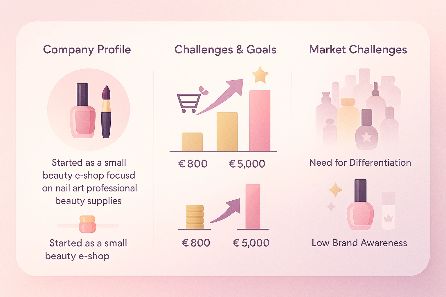Βασική Πρόκληση: Η μετατροπή ενός μικρού e-shop με περιορισμένη ψηφιακή παρουσία σε κυρίαρχο brand στον χώρο της ομορφιάς