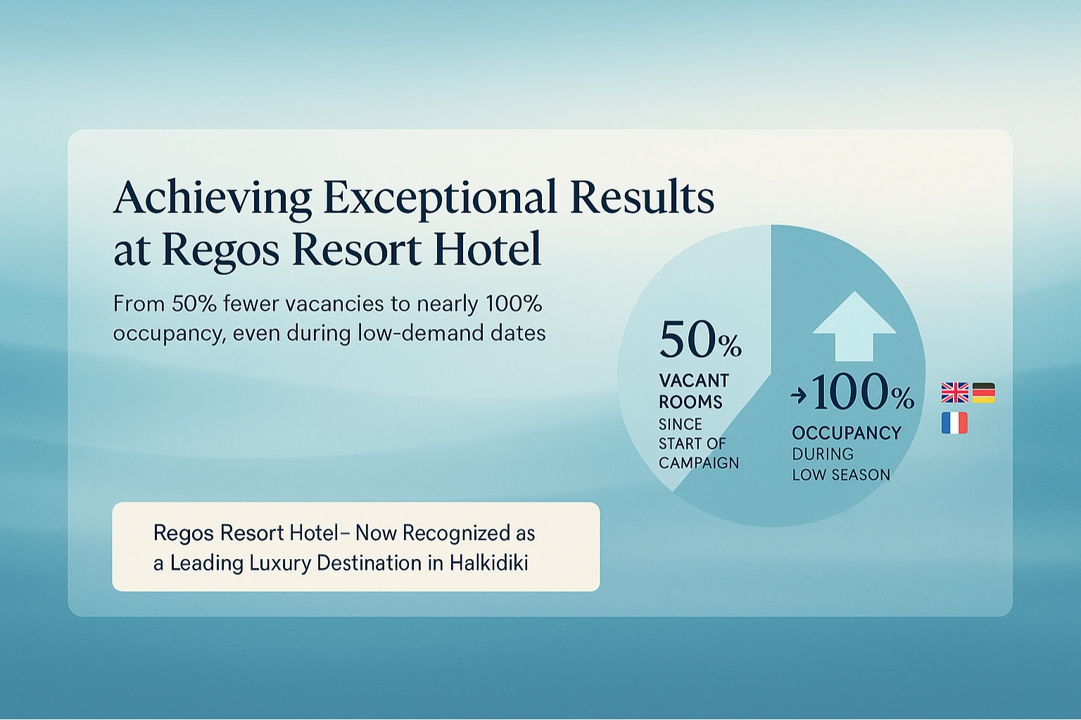 Το παράδειγμα του Regos Resort Hotel υπογραμμίζει πώς μια στοχευμένη, πολυκαναλική προσέγγιση στο marketing μπορεί να μεταμορφώσει τις επιδόσεις μιας τουριστικής επιχείρησης. Με την κατάλληλη στρατηγική, ένα οικογενειακό ξενοδοχείο κατάφερε να εδραιώσει τη θέση του στην αγορά και να προσελκύσει το ιδανικό κοινό του.