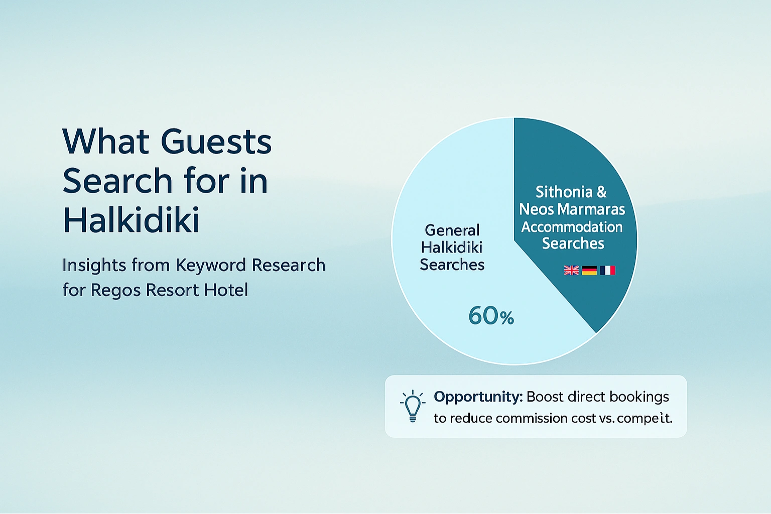Η διαδικασία της έρευνας αποκάλυψε σημαντικές πληροφορίες για τους επισκέπτες και τη συμπεριφορά αναζήτησής τους. Ειδικότερα, η έρευνα λέξεων-κλειδιών (keyword research) ανέδειξε δύο κύριες κατηγορίες ενδιαφερομένων: αφενός εκείνους που έψαχναν γενικά πληροφορίες για τη Χαλκιδική, και αφετέρου εκείνους που στόχευαν ήδη σε πιο συγκεκριμένα σημεία και καταλύματα όπως η Σιθωνία και ο Νέος Μαρμαράς. Από την ανάλυση προέκυψε πως υπήρχε σημαντική ζήτηση από ορισμένες διεθνείς αγορές, καθώς και ανταγωνισμός από παρόμοια ξενοδοχεία της περιοχής. Έγινε επίσης φανερό ότι το Regos Resort Hotel μπορούσε να αξιοποιήσει καλύτερα την υπάρχουσα μηχανή κρατήσεων της ιστοσελίδας του, προσφέροντας πρόσθετη αξία και μειώνοντας το κόστος από προμήθειες τρίτων.